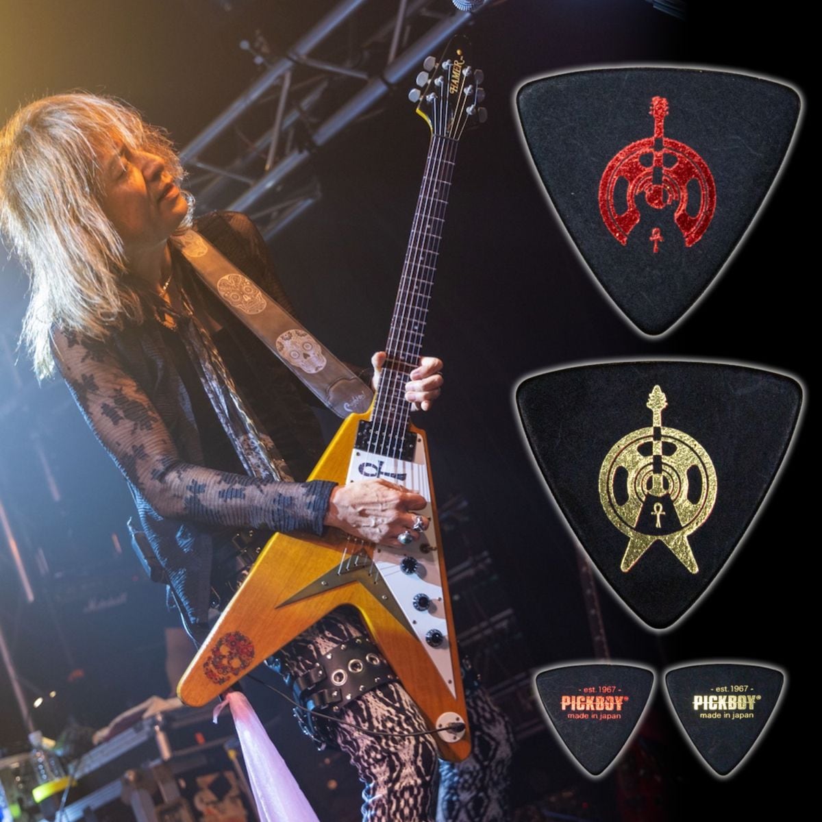 ヘルギター SHARAモデルギターピック[石原 愼一郎/アースシェイカー]PICKBOY 素材:ポリアセタール 形状:トライアングル 色:メタリックレッド、ゴールド ゲージ:0.80mm 20枚入り