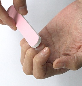 絵柄の面は爪の表面の汚れを取り、凹凸のある表面をなめらかに整えます。イラスト面で表面にツヤを与え、しあげます。