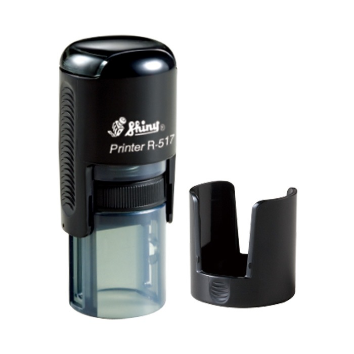 商品仕様 印字サイズ:約17mm 本体サイズ:71×φ30mm 100×35×32mm(パッケージ) □ABS 樹脂 PU スポンジ 水性顔料インク □クリアケース □(印面)JAPAN ※インクパッドが交換できるので、長くご使用いただけます。交換用インクパッドは文具店にてご購入いただけます。