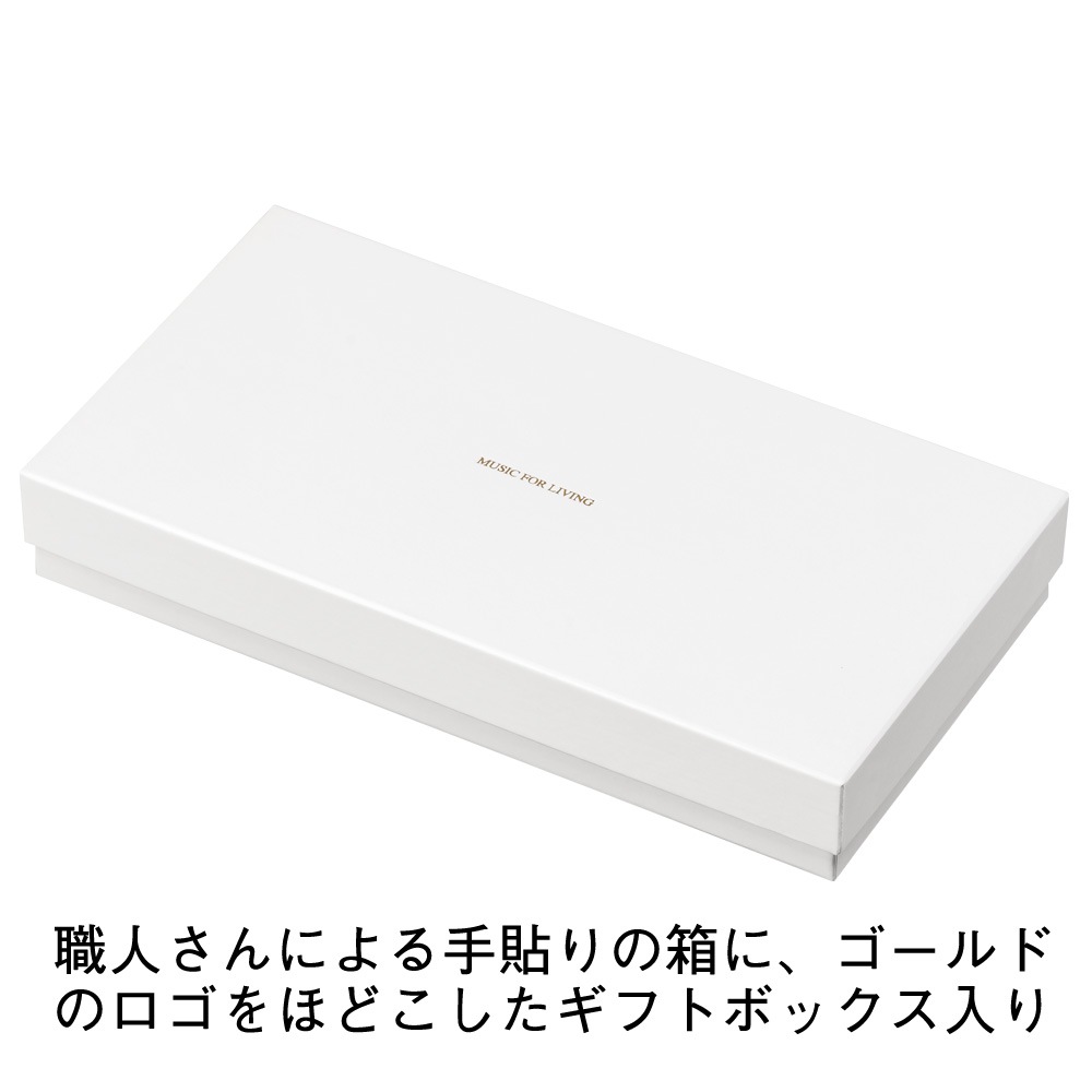 バッハの手書き譜をモチーフにした、オリジナルのジャガード織りの生地を使用。革小物ながら、軽やかにお持ちいただけます。本革に関しては、使うほどに手に馴染むリアルレザーを、細部まで丁寧に仕立てました。メイド・イン・ジャパンの確かなクオリティです。