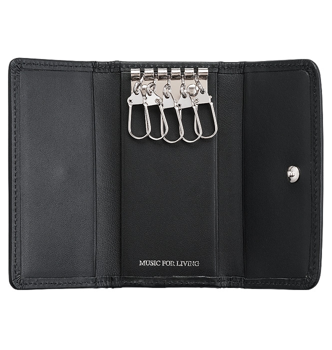 バッグからさりげなく取り出すと音楽好きが伝わるシンプルで使いやすいキーケースです。ブラックはシルバー、ローズはゴールドのキーフックが5個付いていますので多くの鍵が取り付けられてとっても便利です。