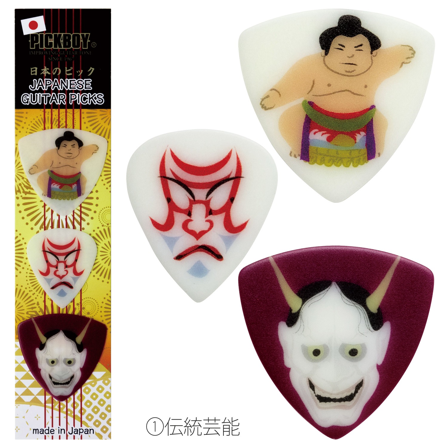This special edition set includes three uniquely designed guitar picks featuring stunning depictions of iconic Japanese landscapes and cultural motifs. Perfect as a gift or keepsake, each pick is crafted with high-quality materials, offering both beautiful artwork and reliable performance for musicians.